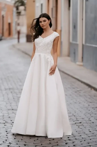 Neckline:Cap Sleeves, Modest, V-Neck