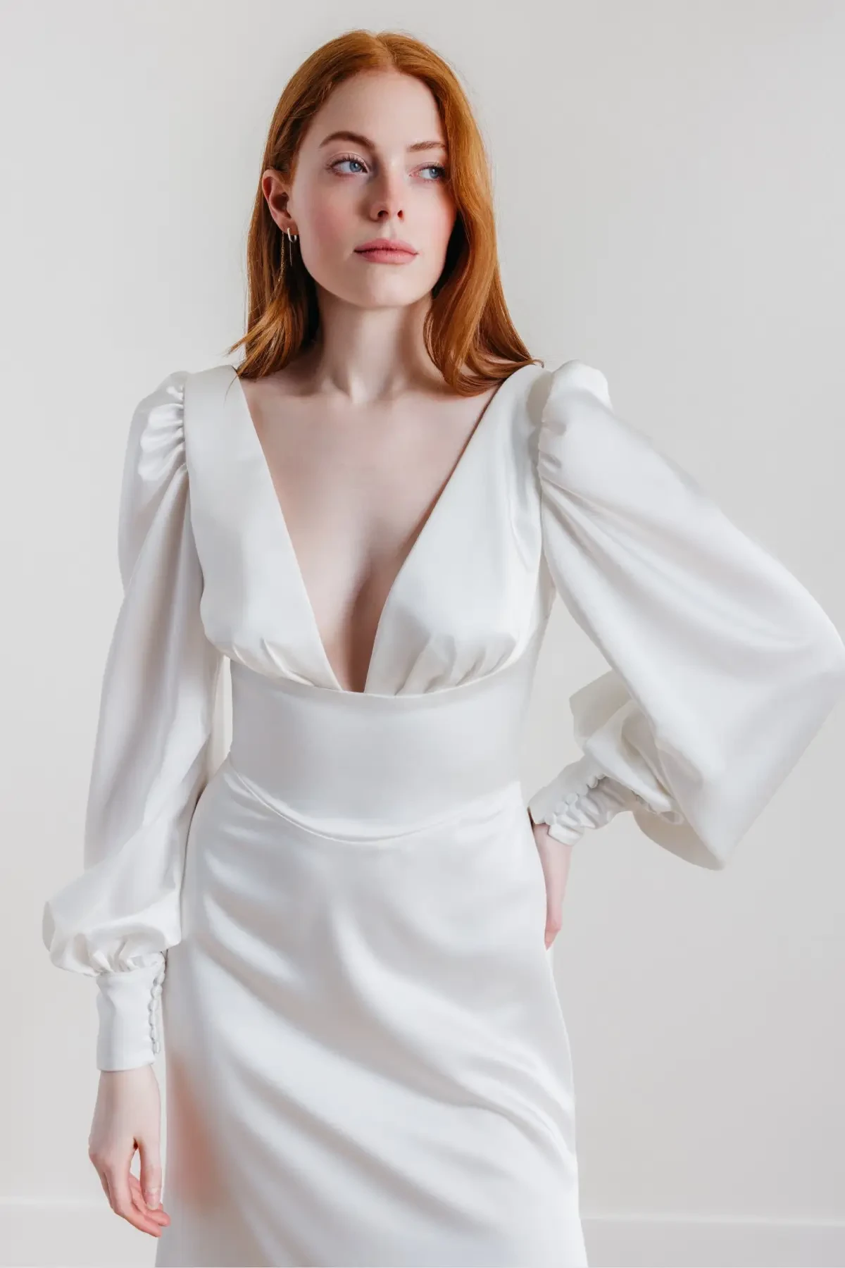 Your sleeve choice can also reflect your personality. Puffy sleeves feel whimsical, lace sleeves feel timeless, and sleek satin sleeves bring a touch of couture.