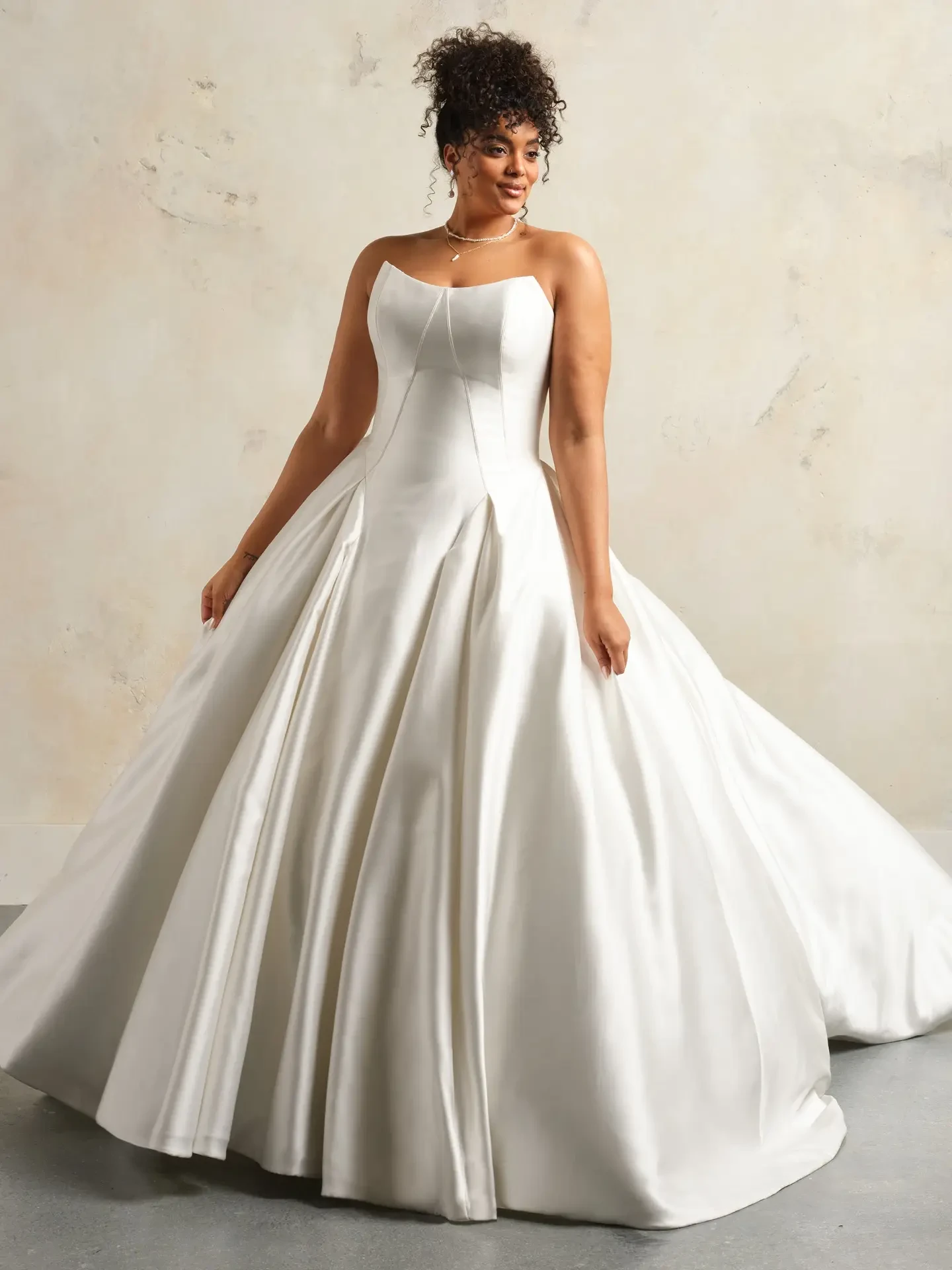 The skirt forms the lower half of your dress and creates much of its personality. Full skirts in tulle or organza bring dramatic volume, while sleek satin or crepe designs give a modern, minimal feel.
