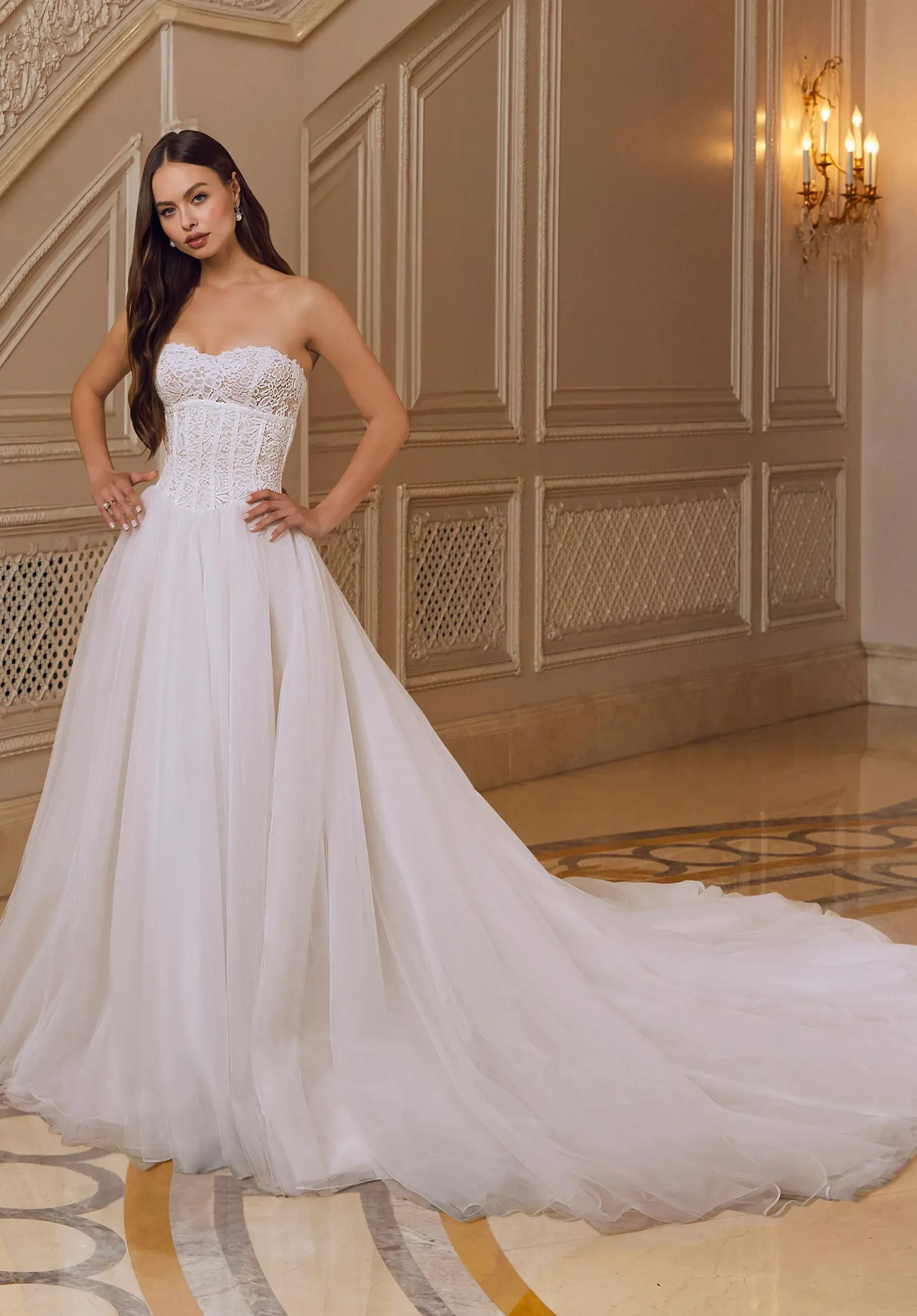 Sleeves are no longer limited to winter weddings. Long sleeves can look refined and regal, while short or illusion sleeves offer a modern balance of coverage and elegance. Strapless and sleeveless designs remain popular for brides who love a clean and classic look.
