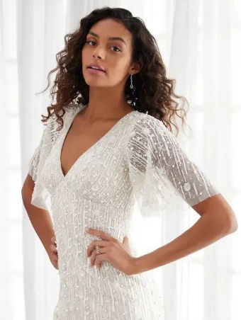 Neckline:Cap Sleeves, V-Neck
